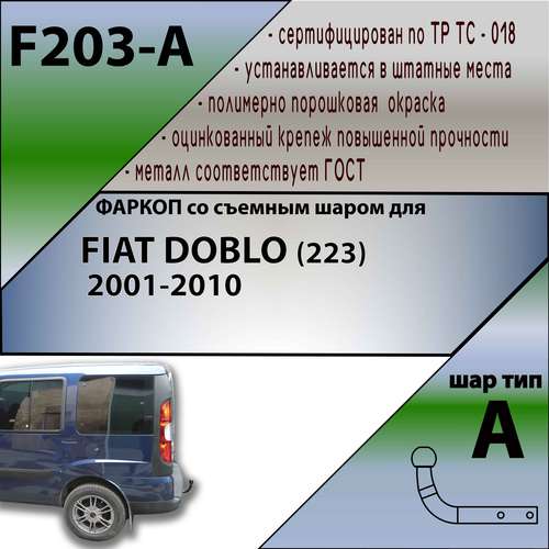 ТСУ для FIAT Doblo 2001-2010. Требуется подрезка бампера. Нагрузки: 1200/75 кг, масса фаркопа 18,24 кг, требуется 2 сверления (без электрики в комплекте)