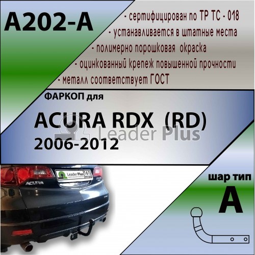 ТСУ для Acura RDX 2006-2012 без снятия и выреза бампера. Нагрузки: 1500/75 кг, масса фаркопа 15,4 кг (без электрики в комплекте)