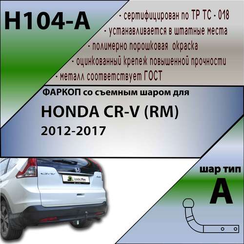 ТСУ для Honda CR-V 2012-2017. Требуется подрезка пластиковой защиты бампера. Нагрузки: 1500/75 кг, масса фаркопа 16,36 кг (без электрики в комплекте