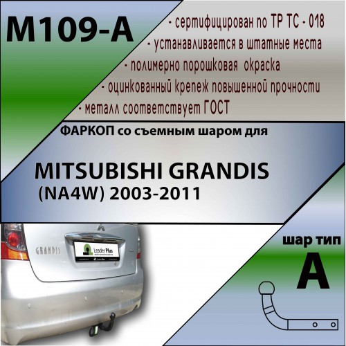 ТСУ для Mitsubishi Grandis 2004-2011 без выреза бампера. Нагрузки: 1200/75 кг, масса фаркопа 19,88 кг (без электрики в комплекте)