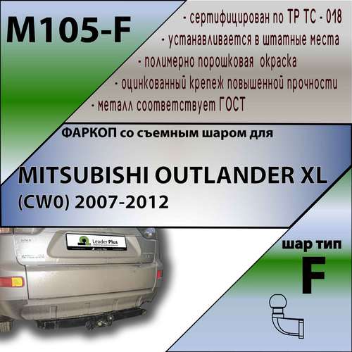ТСУ для Mitsubishi Outlander XL 2007-2012, Peugeot 4007 2007-2012, Citroen C-Crosser 2007-2012 без снятия и выреза бампера. Тип шара: F. Нагрузки: 2000/100 кг, масса фаркопа 25,64 кг (без электрики в комплекте)