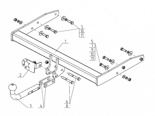 Фаркоп на Volkswagen Transporter/Caravelle/Multivan T5 фургон, микроавтобус 2003-2015, Volkswagen Transporter/Caravelle/Multivan T6 фургон, микроавтобус 2015-, в т.ч. авто с парктроником. Установка без подрезки бампера. Тип шара: A. Нагрузки: 2800/120 кг, масса фаркопа 15,5 кг (без электрики в комплекте)